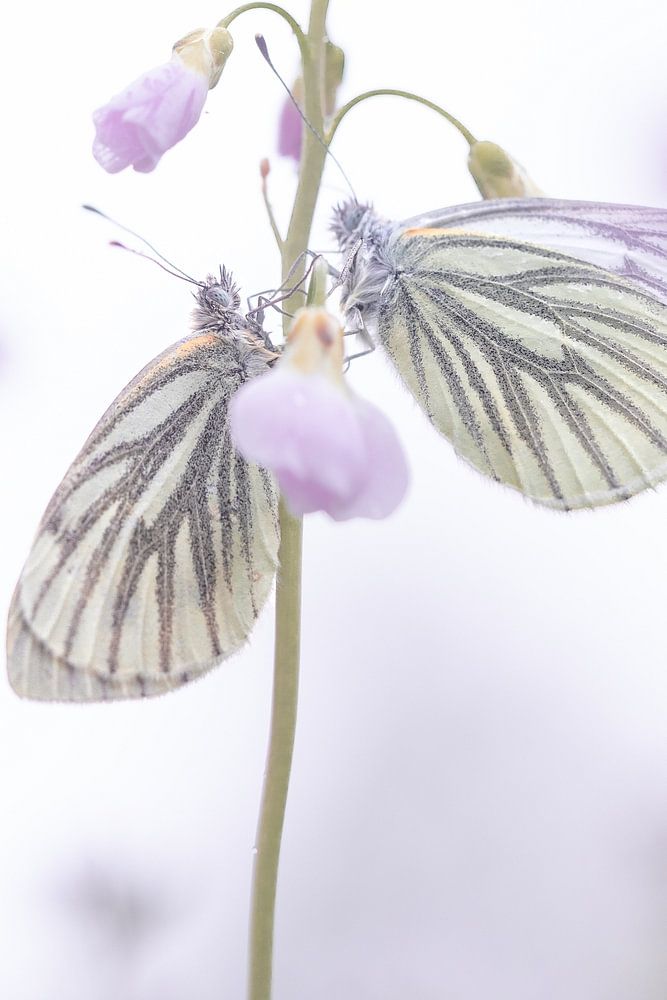 The veined whites, with their subtle lines and transparent beauty, symbolise connection, lightness and stillness. Combined with the fragile radiance of the cuckoo flower, it creates an image that radiates calm and refinement. The soft background enhances the atmosphere of serenity and makes this picture a work of art that caresses the senses.