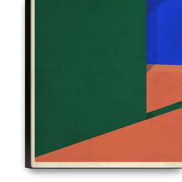 A minimalist architectural scene in which colour and light take centre stage. The deep blue opening immediately catches the eye and creates a sense of depth and space. The slanted shadow and the warm area in the foreground lend the image a sense of dynamism without becoming overwhelming. A modern work with a playful, light-hearted feel.