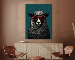 The detailed black and white swirled wool pattern pops against a vibrant teal background, adding texture and personality to any wall. Whether you love animals, witty humor, or contemporary design, this cool sheep art is sure to be a conversation starter.