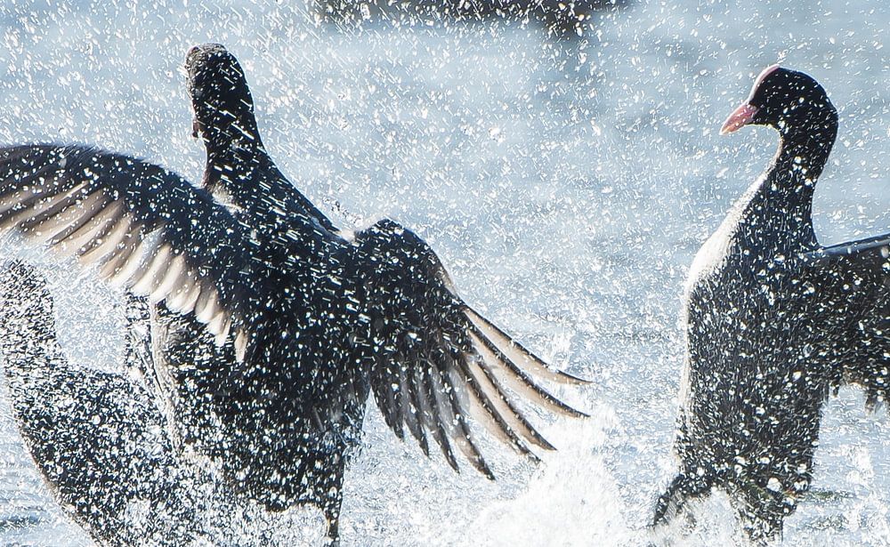 In spring, coots are very aggressive towards other ducks or conspecifics. As a result, they regularly get into fights with each other and it can get rough. The splashes fly around.