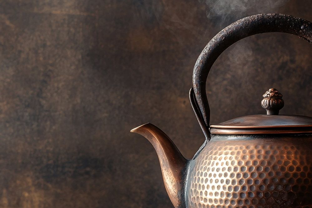 This beautiful vintage copper teapot brings a sense of nostalgia and warmth to any interior. The carefully crafted copper design gives the teapot an elegant, classic look, while the vapour rising evokes a homely feel. The natural light falling on the metal highlights the rich texture and deep colours of the material. Perfect as a decorative piece in a rustic kitchen or living room, but also functional for lovers of an authentic tea atmosphere. Combine this unique teapot with rustic wooden accents and soft lighting for a timeless, cosy ambience.