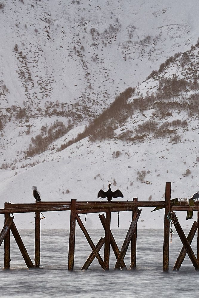 About "Cormorants on old pier on Godøy, Ålesund, Norway"