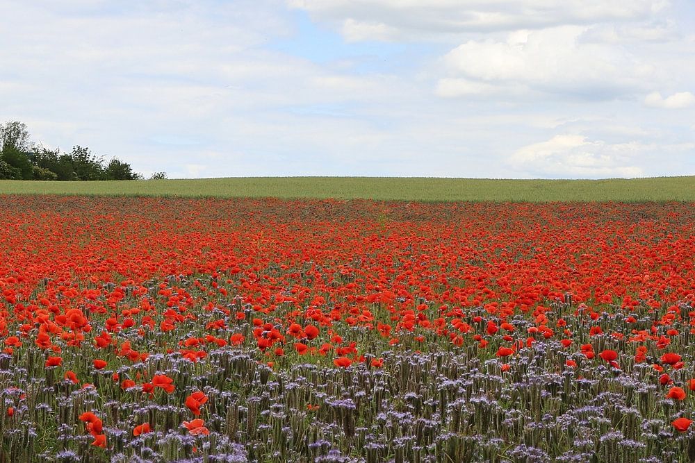 Buy the photo Corn poppy field flowering strips by Karina Gebert on canvas, ArtFrame, poster and wallpaper, printed on demand in high quality.