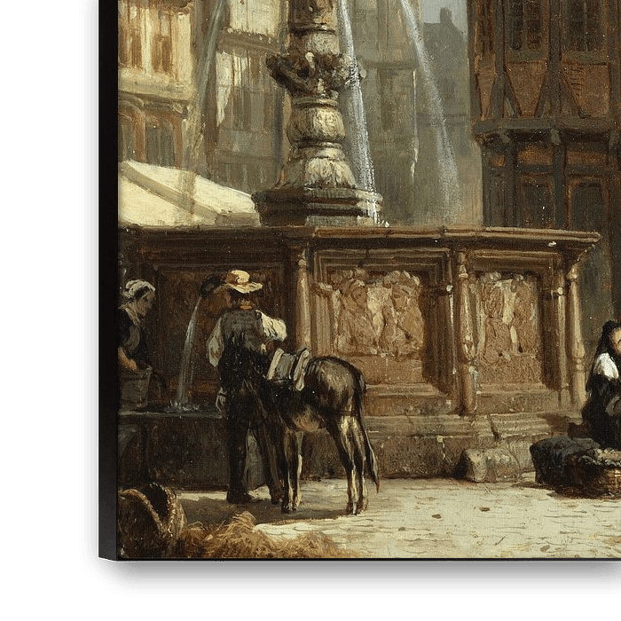 Buy Cornelis Springer,Market day in front of Hildesheim town hall as a reproduction on canvas, ArtFrame, poster and wallpaper, printed on demand in high quality.