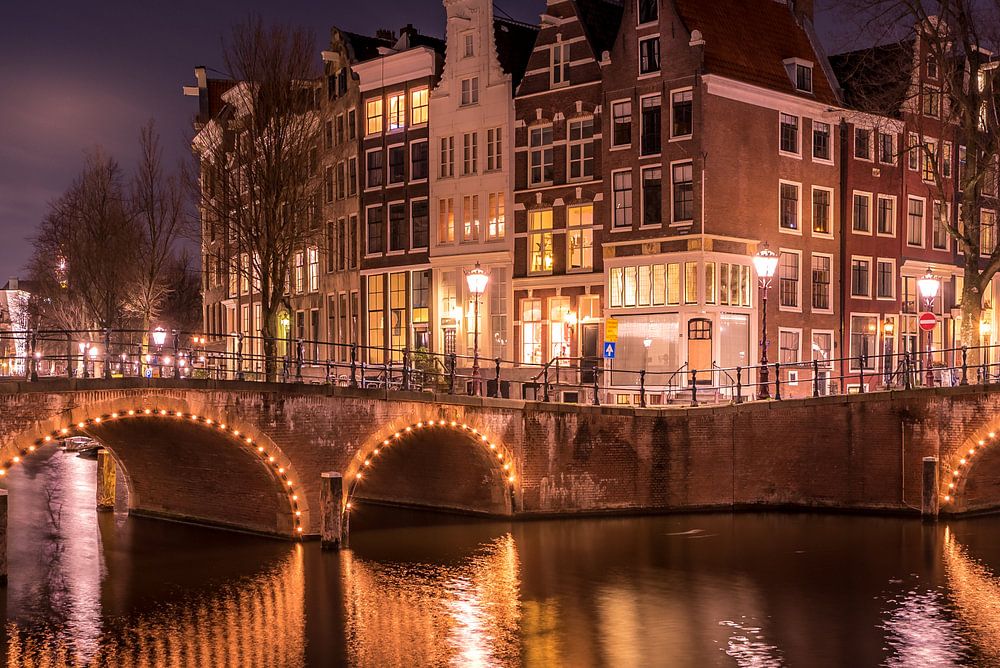 This picture of the Prinsengracht and the Leidsegracht was taken during the night in Amsterdam.