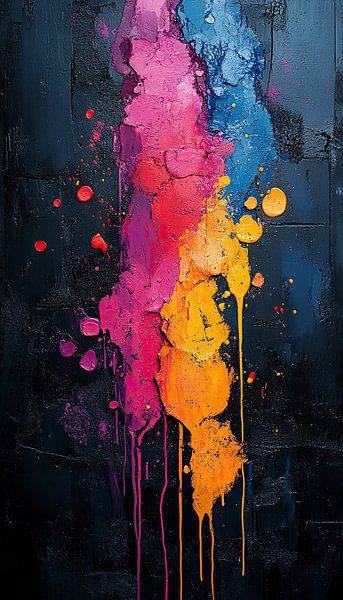 A mesmerizing explosion of vivid colors on a black canvas, this piece captures the raw energy and chaotic beauty of creativity. Each splash and droplet seems to defy gravity, forming a universe of vibrant hues that ignite the imagination. This artwork embodies the spontaneity of art in its purest, most explosive form—a celebration of…