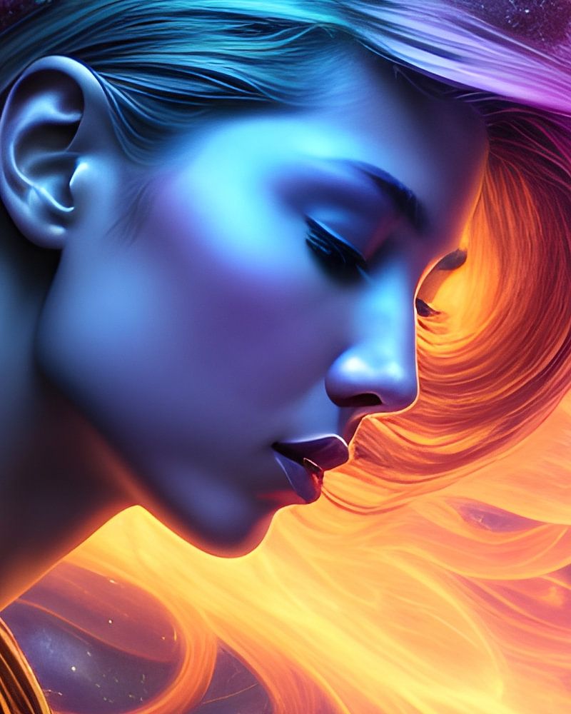 This is one of my best creations so far I think. It was not simple to get a perfectly shaped face in the image I wanted to create, namely a person in between reality and dreams. Not quite the way I had it in my head but the AI understood this beautifully and turned it into a powerful image. The Cosmic elements flow smoothly into the woman who is beautiful and natural.
