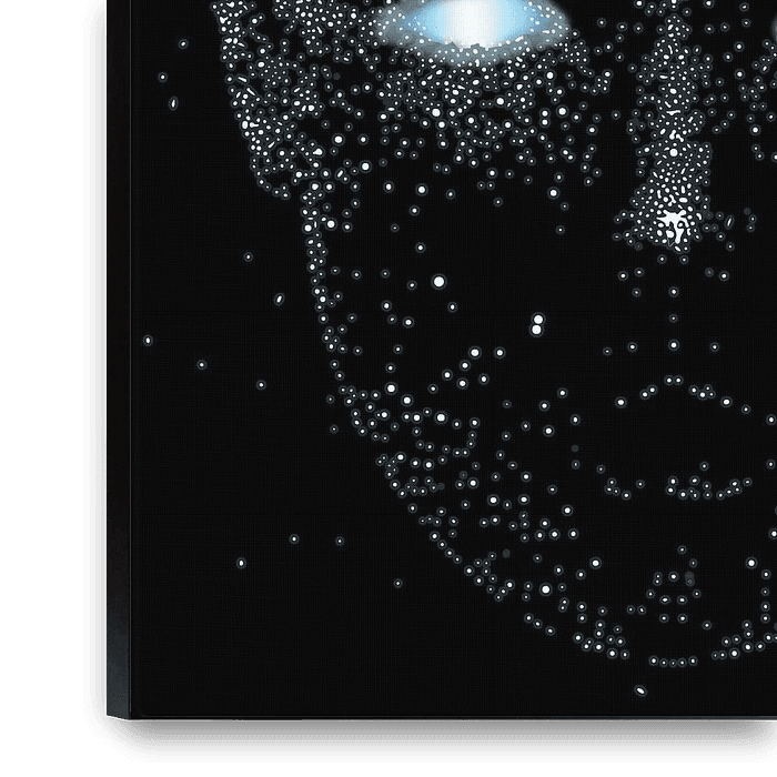 Bring the universe into your space with this striking minimalist design. A human head silhouette, composed of stardust-like dots, bridges the gap between humanity and the cosmos. Perfect for modern interiors, tech lovers, and fans of abstract art.