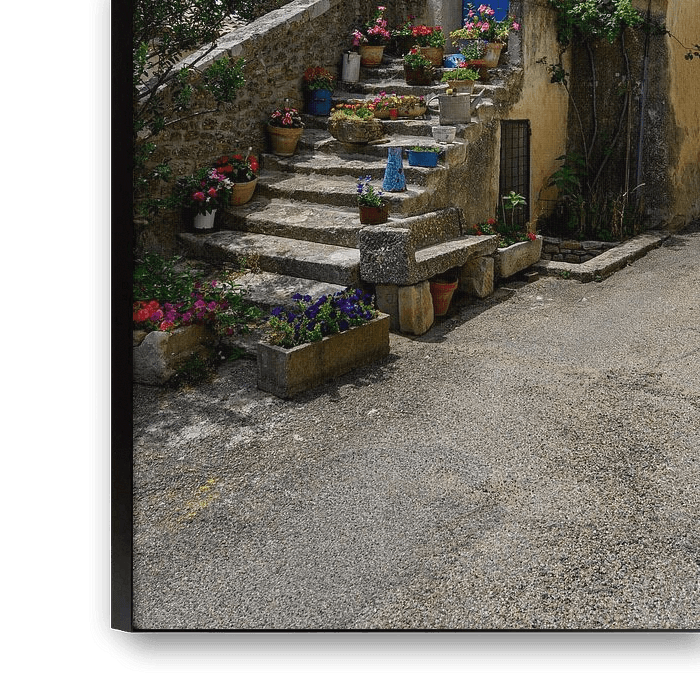 Buy this still life Cottage with long stone staircase full of flowers by Peter Bartelings on canvas, ArtFrame, poster and wallpaper, printed on demand in high quality