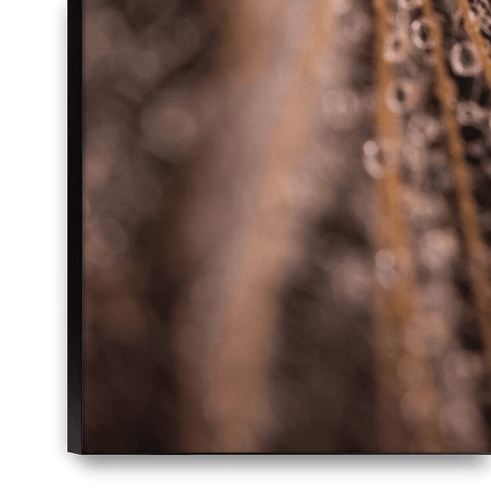 "Country feeling: drops on a wood-coloured fluff" is a macro photograph of water drops on the fluff of a Tragopogon (morning star). This processed photo consists mainly of the colours: beige - brown - champagne with a dark background. The depth of field is small, creating a dreamy atmosphere as well as a sense of depth in the…