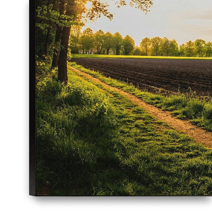 Buy this landscape artwork Country road and fields in the golden evening light by Freek Wolsink on canvas, ArtFrame, poster and wallpaper, printed on demand in high quality.