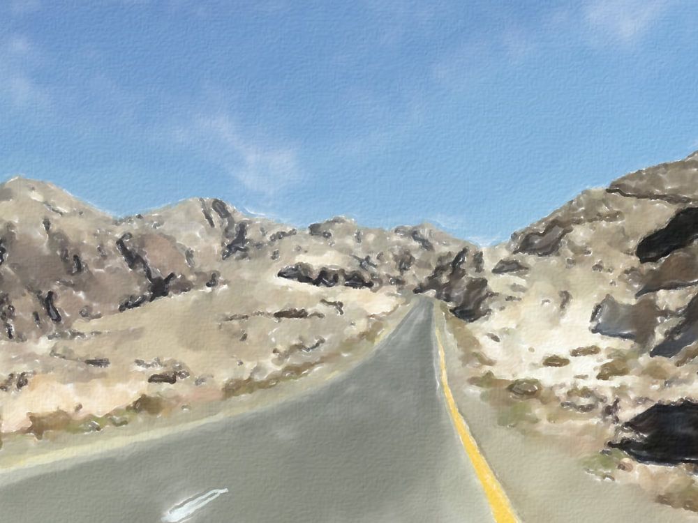 Buy this digital art artwork Country road through the rock desert of Jordan by Frank Heinz as a reproduction on canvas, ArtFrame, poster and wallpaper, printed on demand in high quality.