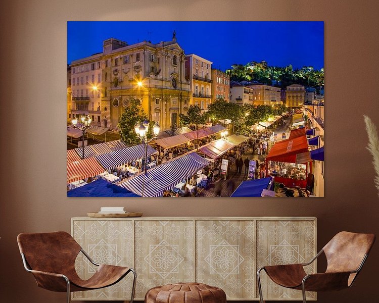 Buy the photo Cours Saleya in Nice at night by Werner Dieterich on canvas, ArtFrame, poster and wallpaper, printed on demand in high quality.