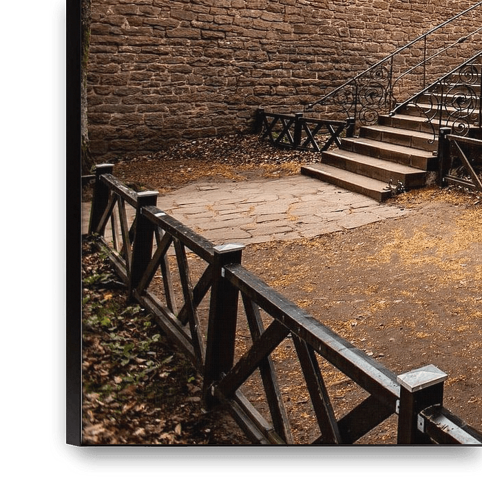 A charming courtyard with centuries-old stonework, a stone staircase, and wooden railings marks the heart of this impressive French castle. History lingers between these ancient walls.