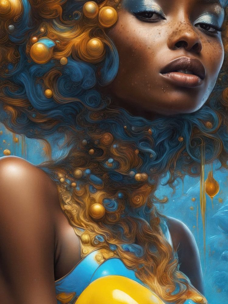 In "Couture", the artist explores the boundaries between reality and fantasy. The woman at the centre of the picture appears both powerful and vulnerable, her beauty emphasised by the extraordinary headdress. The detailed design and vibrant colours make this work a real eye-catcher.