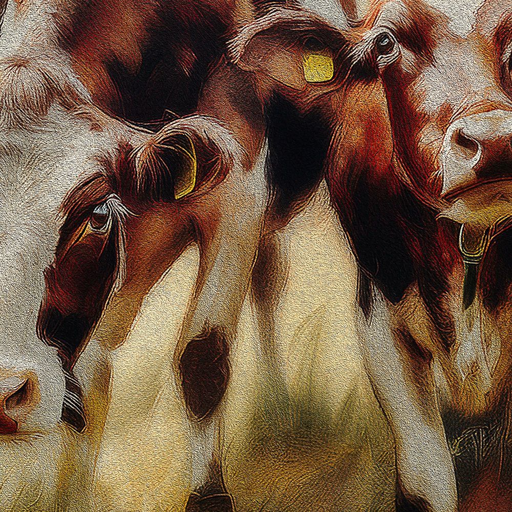 Buy this cow art Cow calves by Marjolein Deelen on canvas, ArtFrame, poster and wallpaper, printed on demand in high quality.