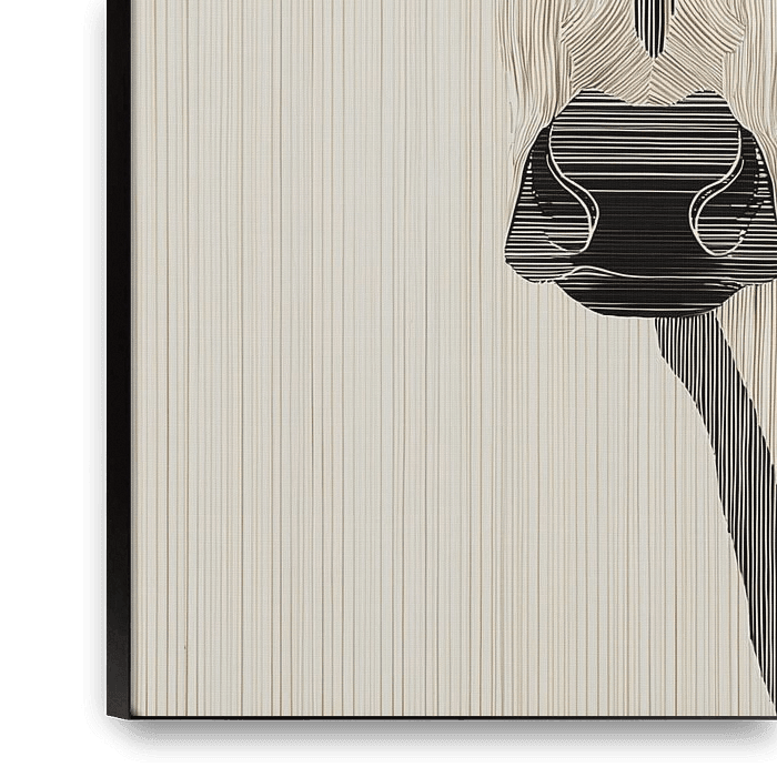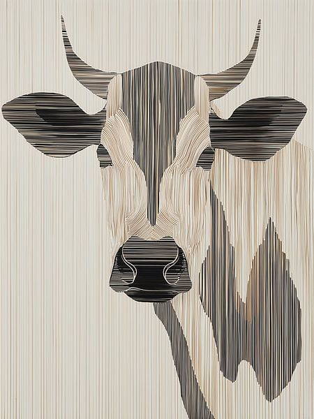 A frontal portrait of a cow, constructed through a refined interplay of vertical lines that dominate the entire image. The animal’s form is not created by traditional contours, but by variations in the density and direction of the lines. As a result, the face appears, as it were, to emerge from the structure itself, with the nose and…