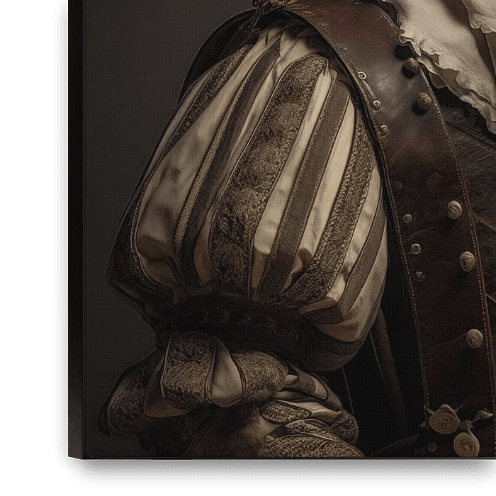Buy this cow art Cow in medieval dress by KoeBoe on canvas, ArtFrame, poster and wallpaper, printed on demand in high quality.