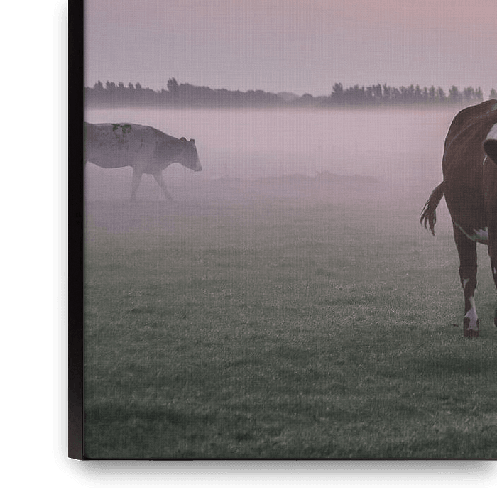 Buy this cow art Cows in the Mist by Dirk van Egmond on canvas, ArtFrame, poster and wallpaper, printed on demand in high quality.