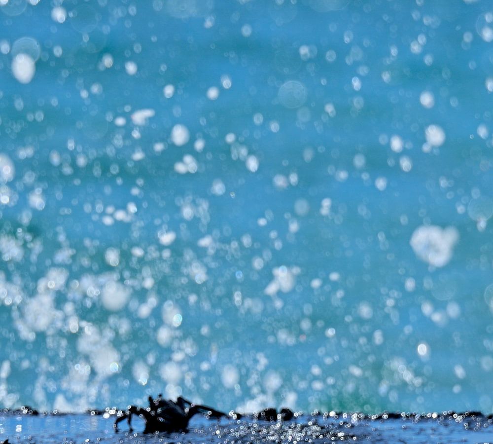 Beachcombing is one of my favourite pastimes and in Hawaii I was able to indulge in this. The photo shows some crabs that need to hold on tightly to the next wave. The combination of splashing seawater and bokeh gives this photo something extra's.