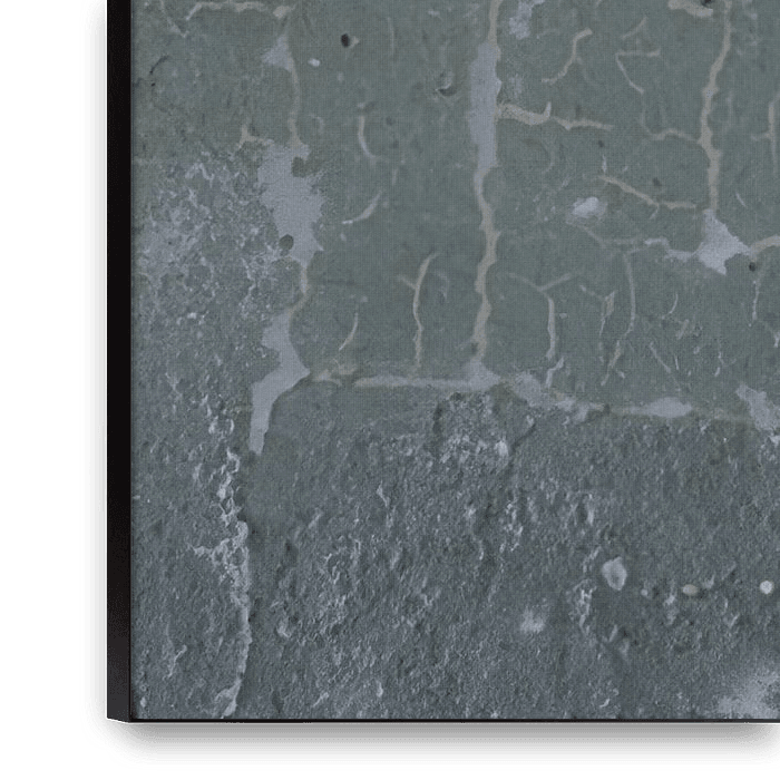 This artwork depicts a grey wall whose paint is cracking like an ageing, flaking layer – fine cracks and flaking reveal the textures and depth beneath. In the left-hand corner, a warm orange beam of light shines, as if from a lamp, spreading softly and casting shadows, in stark contrast to the cool grey tones. I aim to create an…