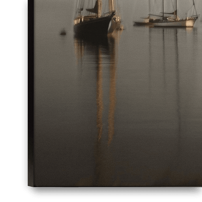 Buy this digital art artwork Creative Vision Of Sailing Boats In Motion Under A Foggy Summer Sky by Karina Brouwer as a reproduction on canvas, ArtFrame, poster and wallpaper, printed on demand in high quality.