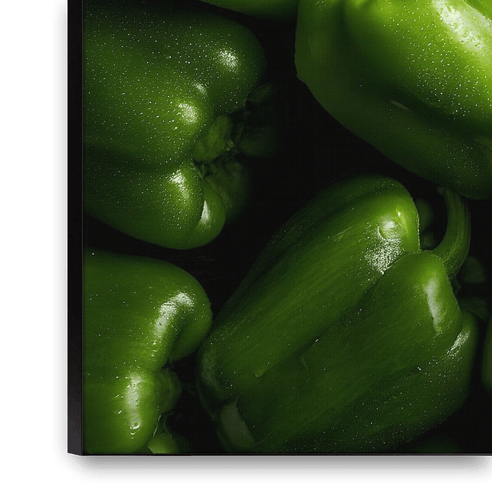 Buy the photo Crisp close-up of fresh green peppers by drdigitaldesign on canvas, ArtFrame, poster and wallpaper, printed on demand in high quality.