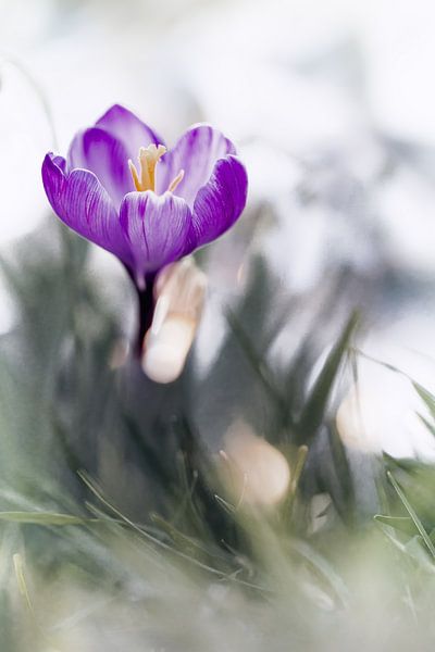 Buy this flower art Crocus in the grass by Patricia van Kuik on canvas, ArtFrame, poster and wallpaper, printed on demand in high quality.