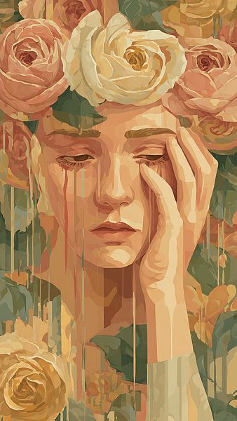 Buy this flower art Crying Woman Tears Bloom Into Roses by Aden Pink Studio on canvas, ArtFrame, poster and wallpaper, printed on demand in high quality.