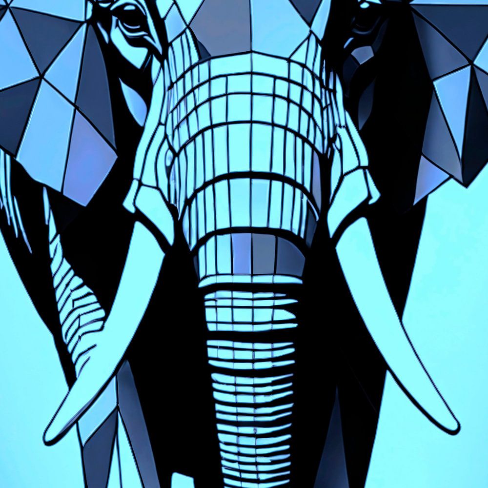 AI generated and customised art crystal illustration of an elephant bull with a blue shimmer. Beautiful and decorative art for your rooms.