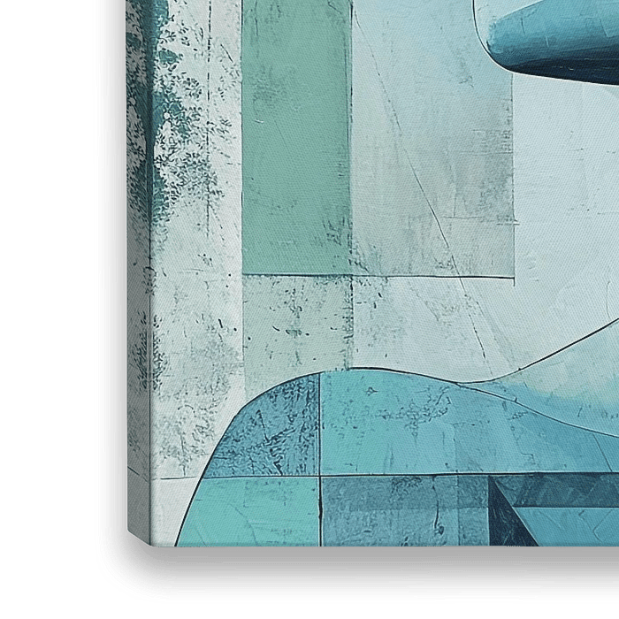 Stylised portrait of a woman, executed in a cubist style reminiscent of the work of Pablo Picasso. The various geometric shapes flowing into each other create a complex but harmonious composition. Cool blues and greens predominate, evoking a calm and thoughtful atmosphere. The use of light and shadow gives the portrait a three-dimensional feel, while the fragmentation of the shapes invites the viewer to look at the work from different perspectives.