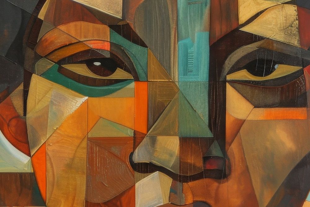 This mesmerising cubist portrait of a woman combines warm earthy tones with cool blues and greens to create a harmonious yet dynamic composition. The geometric shapes and shading add depth and character to the image, while the woman's closed eyes exude a calm and contemplative atmosphere. Ideal for stylish interiors and art lovers looking for an expressive yet calming work of art. This painting will bring a modern, artistic touch to any home or office.