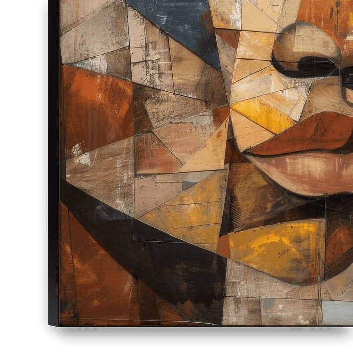 This mesmerising cubist portrait of a woman combines warm earthy tones with cool blues and greens to create a harmonious yet dynamic composition. The geometric shapes and shading add depth and character to the image, while the woman's closed eyes exude a calm and contemplative atmosphere. Ideal for stylish interiors and art lovers…