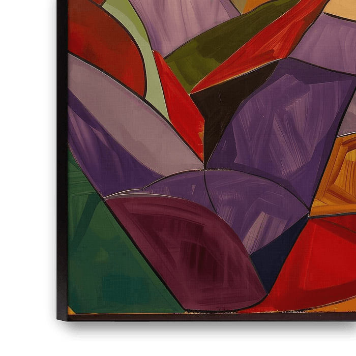 This cubist masterpiece captures the essence of a woman at rest. Her face, formed by geometric shapes, exudes serenity as she rests her head on her hand. The vibrant colour palette of yellow, red, blue, green and purple adds a sense of energy and emotion to the artwork. It is a bold and expressive representation of the female form, perfect for those who want to add a touch of modern art to their interiors.