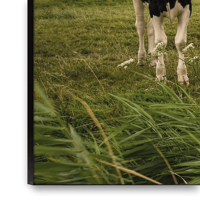 Buy this landscape artwork Curious young cows in the meadow by By Marjolein Design on canvas, ArtFrame, poster and wallpaper, printed on demand in high quality.