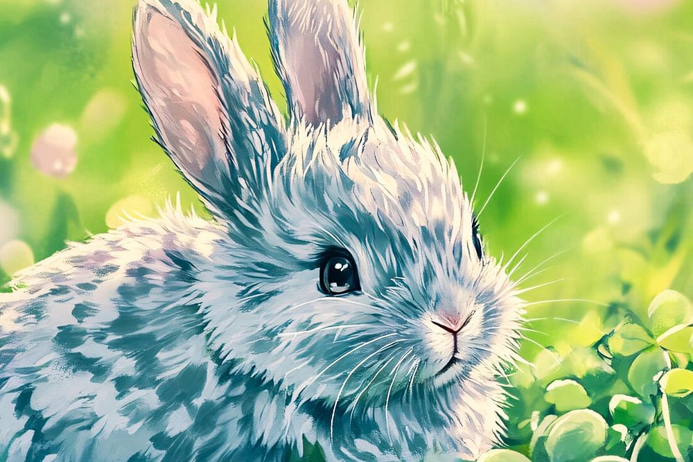 This enchanting design shows an adorable bunny sitting comfortably among green clover and softly lit flowers. The perfect image of peace and nature brings a sense of calm and joy. With bright colours and beautiful details, this design is ideal for anyone who wants to bring the beauty of nature into their home. Whether for a bedroom, dining room or children's room, this piece of art adds a touch of playful charm to any space. A unique addition to your interior!