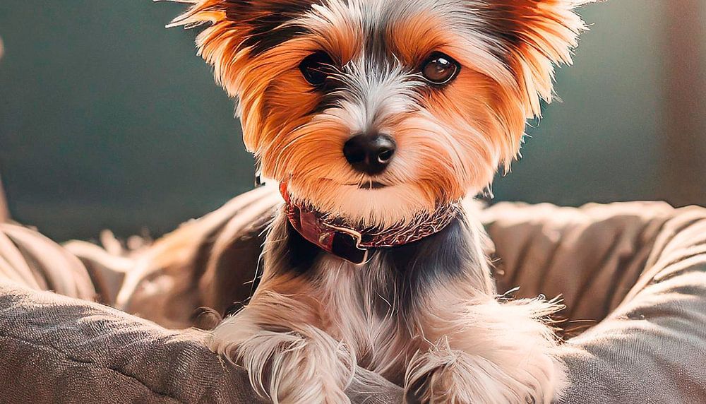 Cute little terrier dog resting on the pet bed at home