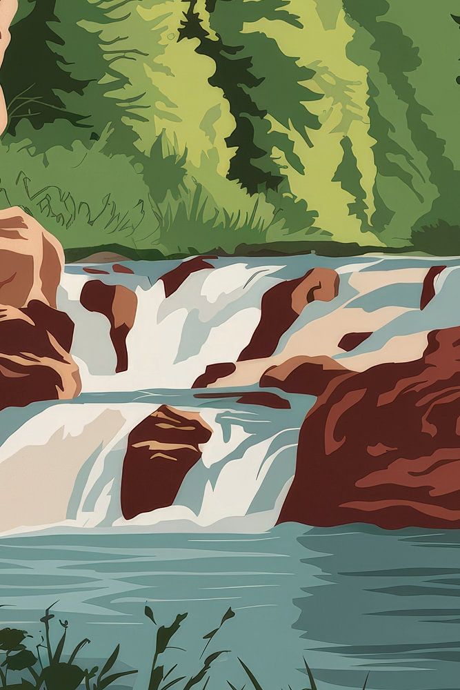 Gentle water currents framed by lush greenery and majestic rocks create a harmonious atmosphere that invites you to dream. The vibrant colours and calming waterfall radiate tranquillity and closeness to nature. Ideal for the living room to capture relaxing moments and let your mind wander.