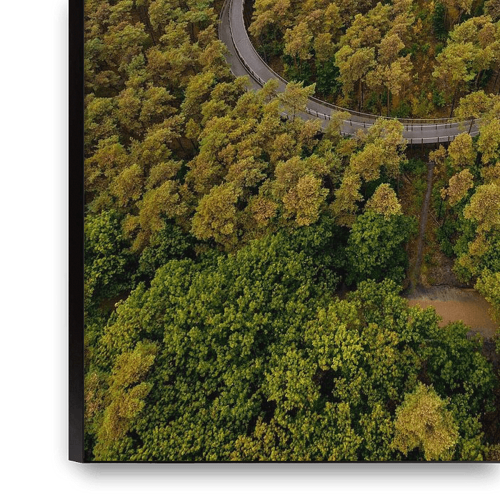 This impressive drone photo shows the iconic Cycling Through the Trees cycle path from a high perspective, with the perfect circle subtly blending into the vast forest landscape. Surrounded by a sea of green, the elevated path forms a powerful geometric element in the middle of nature.