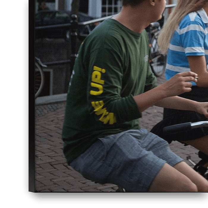 Buy the photo Cyclists on the Oudegracht by Julian Buijzen on canvas, ArtFrame, poster and wallpaper, printed on demand in high quality.