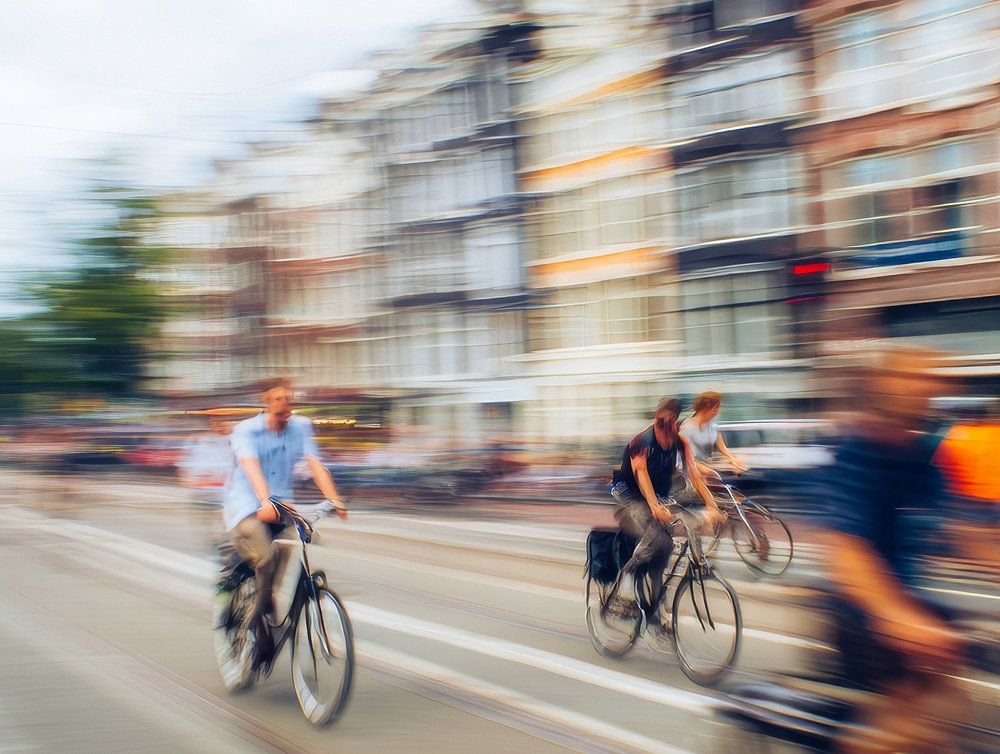 Cyclists on the move through Amsterdam by But First Framing