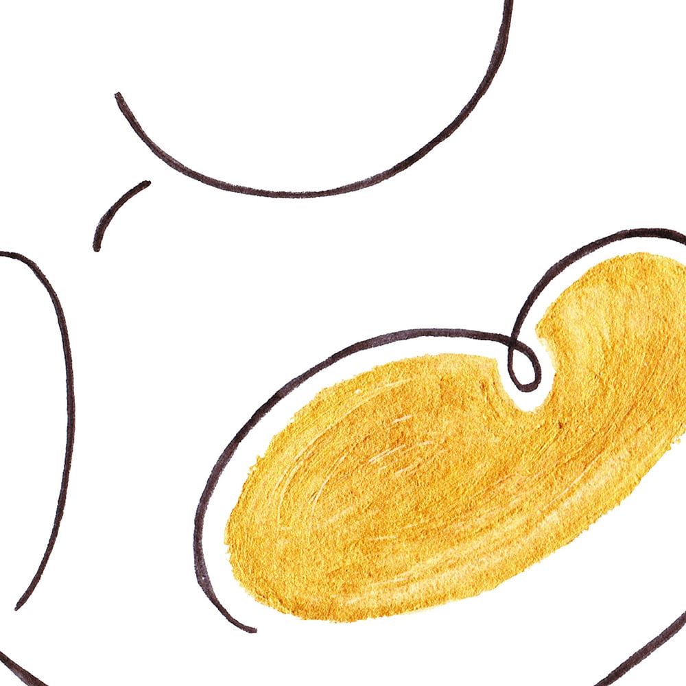 Technique: Ma-art-je 's own method with black ink and watercolour. She likes organic shapes and simple use of colour. She only lets the watercolour paint flow inside the shape. It is surrounded by a white line and the black ink.