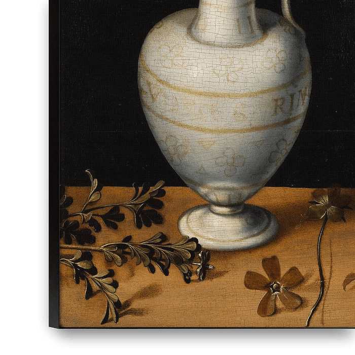 Buy Daffodils, periwinkle and violets in a jug, Ludger tom Ring the Younger as a reproduction on canvas, ArtFrame, poster and wallpaper, printed on demand in high quality.