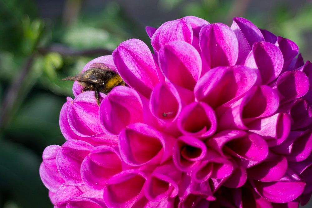 Buy this flower art Dahlia with a bee. by Anjo ten Kate on canvas, ArtFrame, poster and wallpaper, printed on demand in high quality.