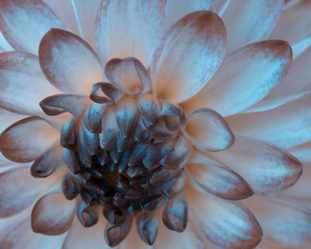 The beautiful dahlia in soft colors of amber, light blue and soft orange.
