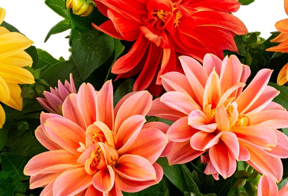 Buy this flower art Dahlias flowers on white background by ManfredFotos on canvas, ArtFrame, poster and wallpaper, printed on demand in high quality.