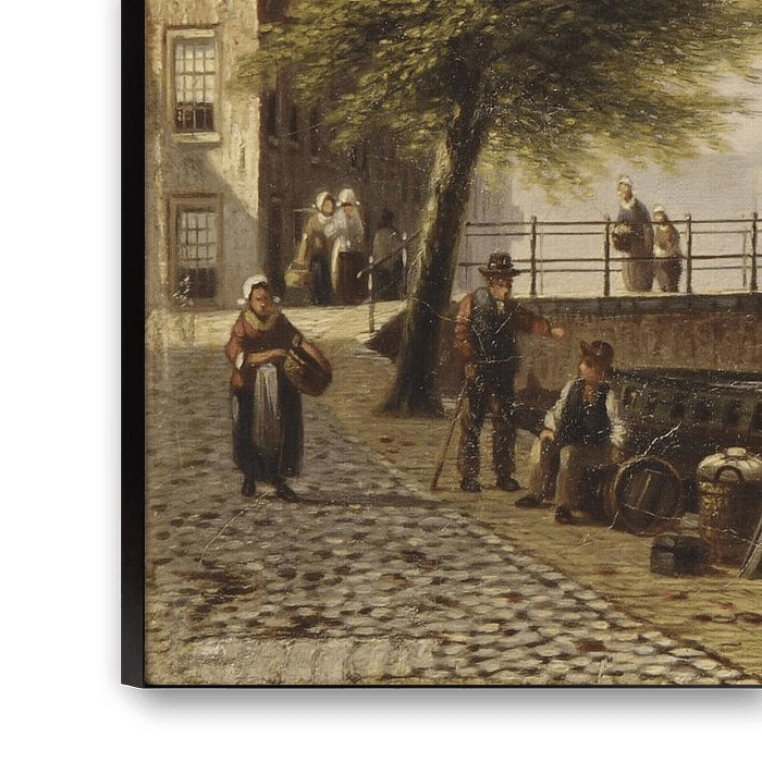 Buy this painting Daily Activities Along a Dutch Canal by Antonije Lazovic as a reproduction on canvas, ArtFrame, poster and wallpaper, printed on demand in high quality.