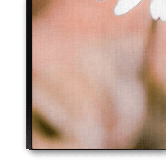 Enjoy spring with a fresh photo print on the wall like these flowers called daisies on a soft pastel pink background.