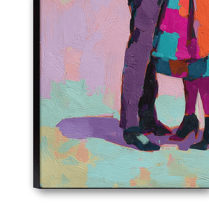 Details: dance, couple, dress, hat, colours, pink, energy, movement, joyful, painting