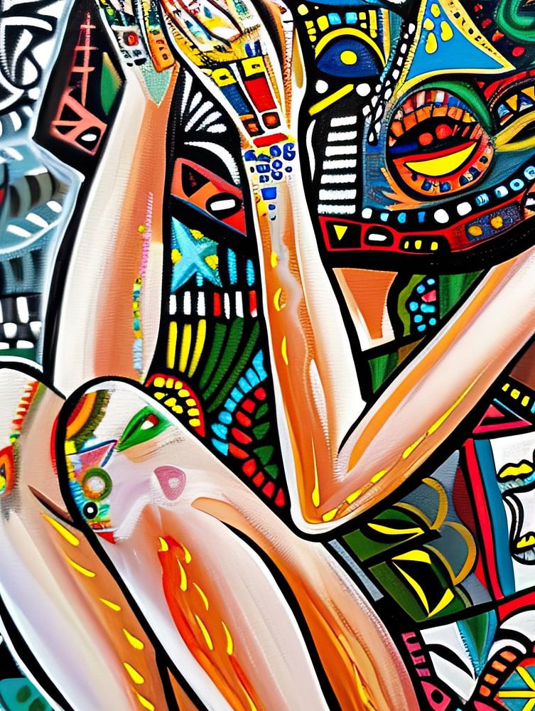 Details: abstract, human figure, colourful, modern, art, face, eyes, expressive, dynamic, creative